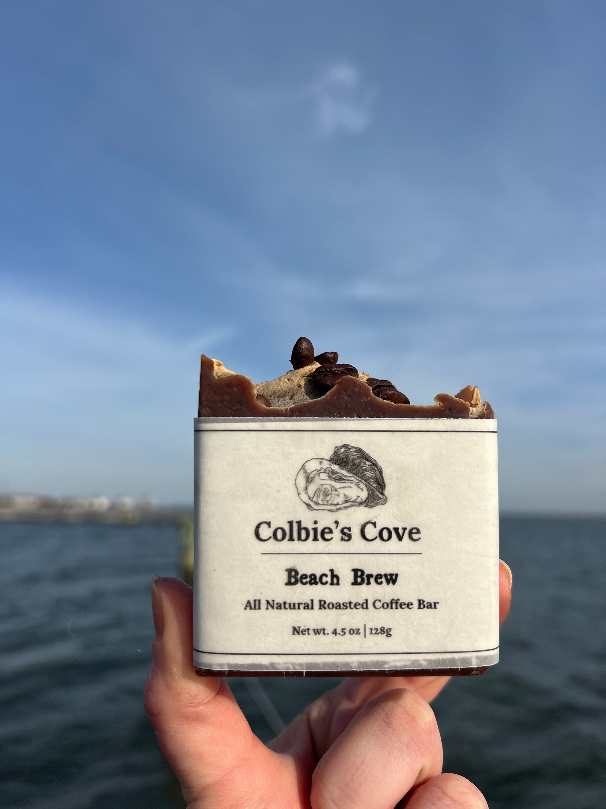 Wake up your skin with our all natural Beach Brew bar! Crafted with organic columbian coffee beans, cocoa butter and Cedarwood, Coffee & Vanilla essential oils, this bar is a treat for your senses. Coffee grounds and cocoa powder and blended for a gentle exfoliation.