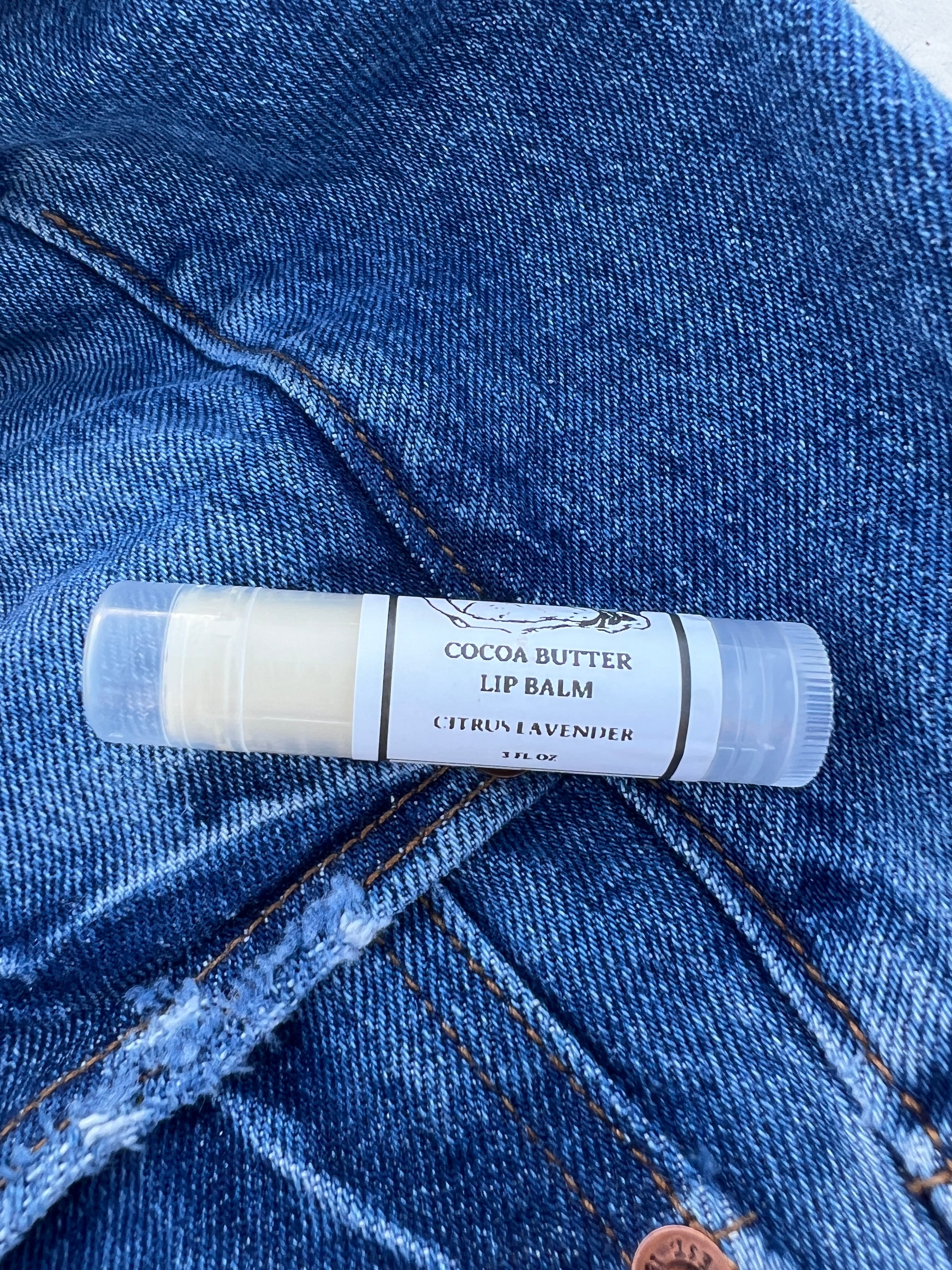 Revive and relax with our Citrus Lavender scented Cocoa Butter Lip Balm. Our balms are made with a blend of hydrating coconut oil, cocoa butter and beeswax to lock in moisture. Our recipe also includes organic Vitamin E oil and essential oils for a an optimal lip balming experience. Lavender and Citrus essential oils work together to soothe and invigorate.