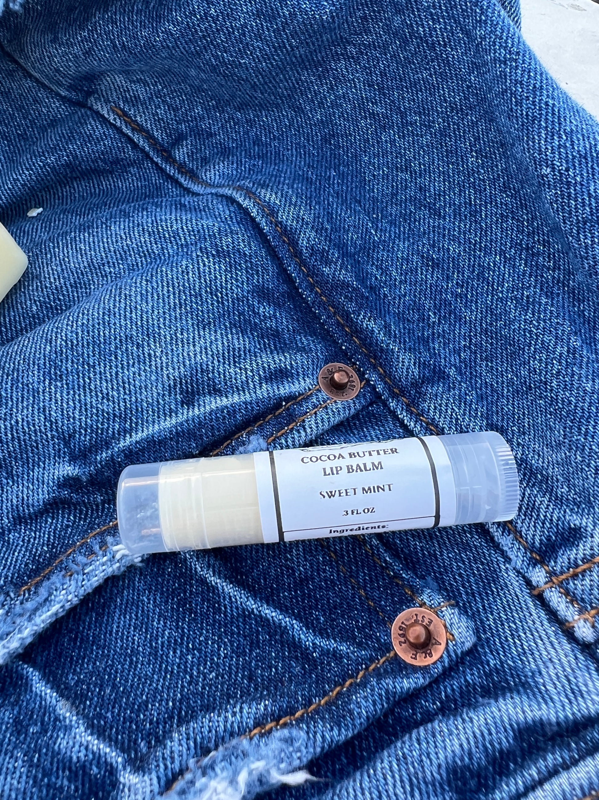 Concentrate and calm your sense with our Sweet Mint scented Cocoa Butter Lip Balm. Our balms are made with a blend of hydrating coconut oil, cocoa butter and beeswax to lock in moisture. Our recipe also includes organic Vitamin E oil and essential oils for a an optimal lip balming experience. Peppermint essential oils blends with the natural flavor of the cocoa butter for a sweet minty flavor.